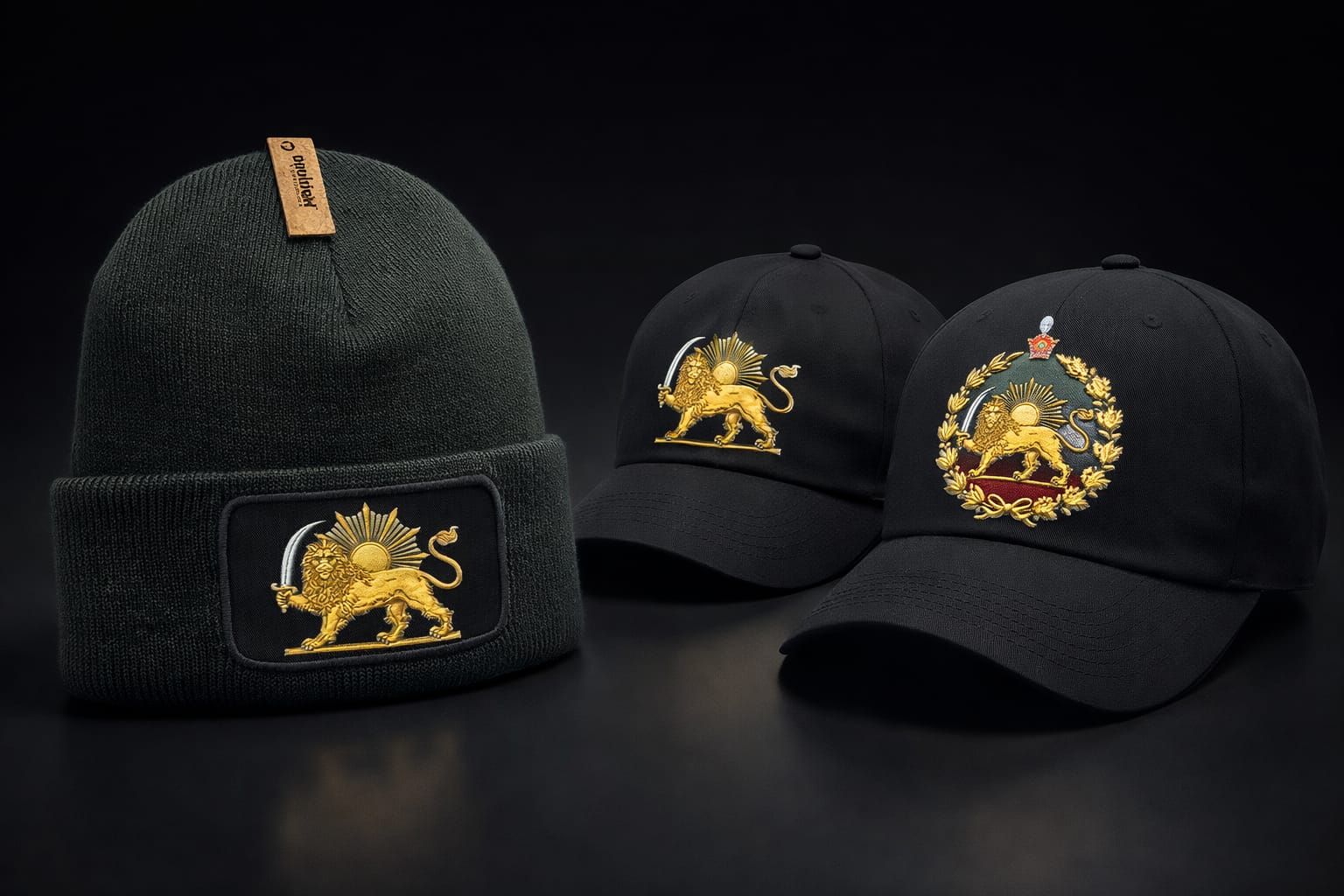 Bonnet avec le symbole Lion et Soleil Pahlavi, au design sobre et élégant.